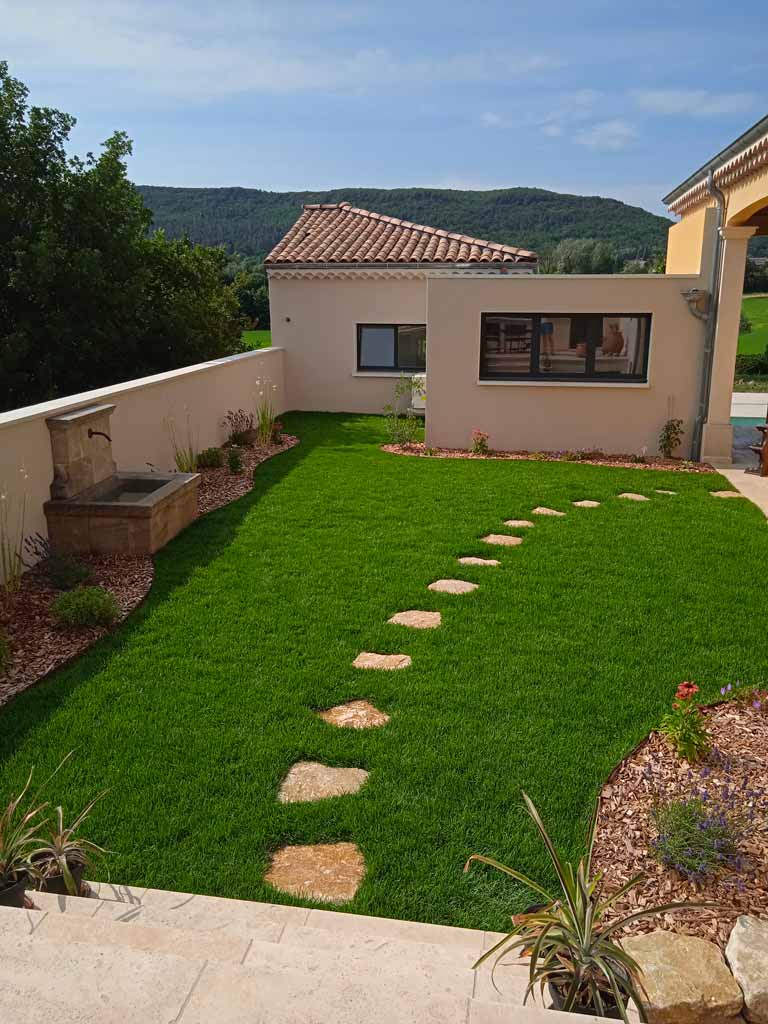 • Semis traditionnel ou pose de gazon en rouleaux pour un rendu immédiat