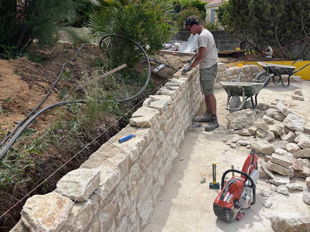 • Murs en pierres sèches : maçonnés ou posés à sec, ces murs créent des structures durables et naturelles.