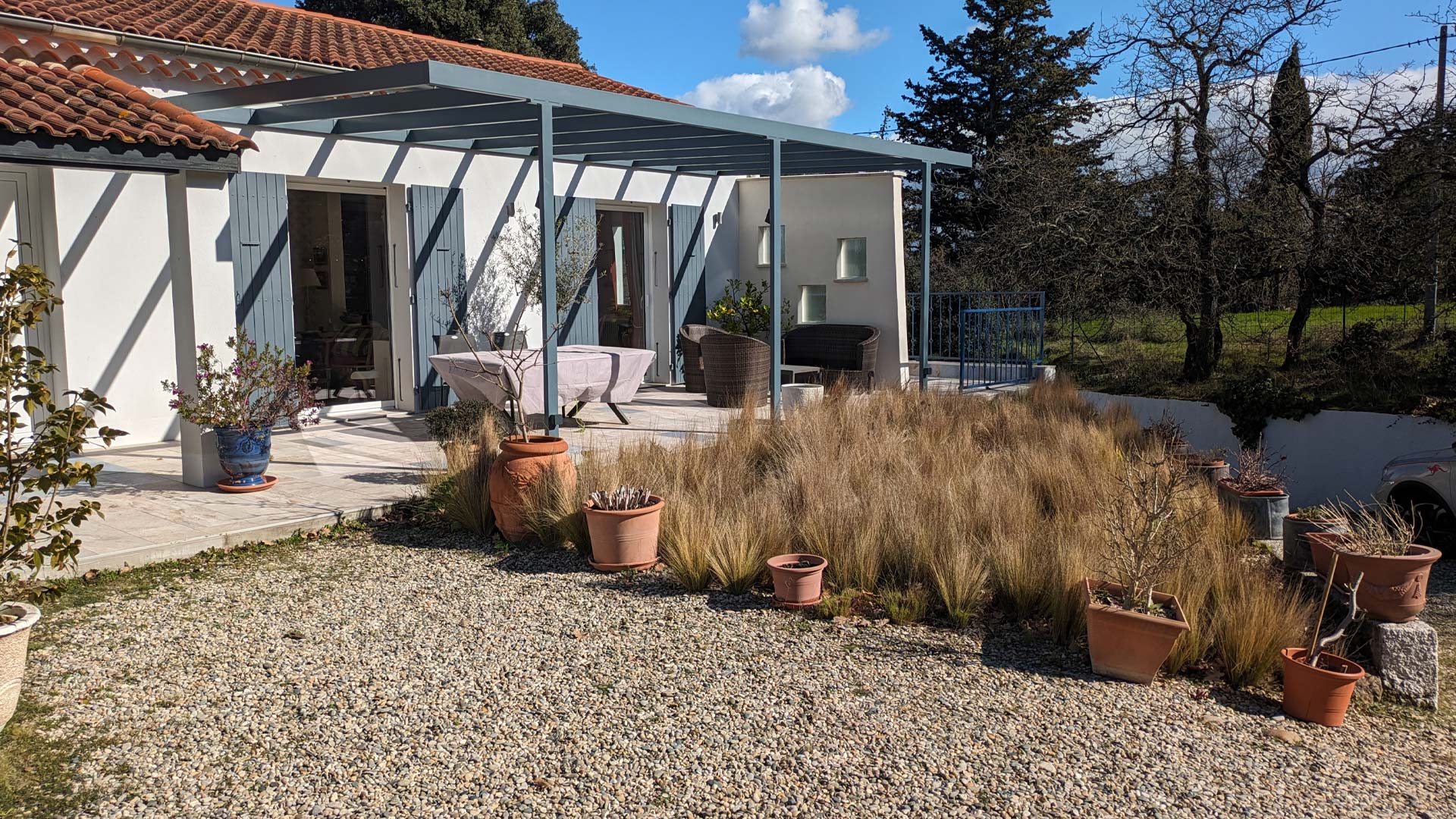 Pour embellir l’ensemble, le jardin a été sublimé par des plantations de végétation méditerranéenne, sélectionnées pour leur charme, leur résistance et leur esprit ensoleillé. Un extérieur pensé pour durer, respirer et profiter pleinement des beaux jours.